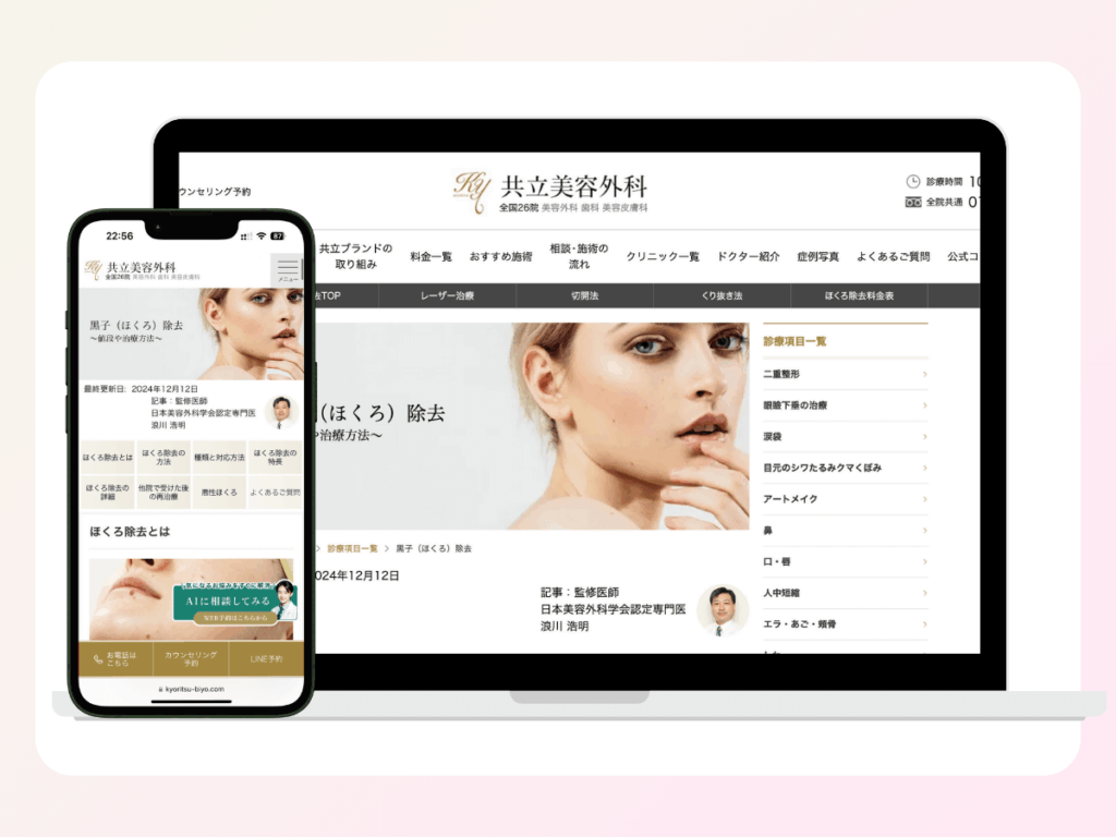 共立美容外科は、ほくろ取り放題コース(顔のみ・レーザー治療)で複数箇所のほくろ除去も対応している仙台(宮城)エリアのおすすめクリニックです。