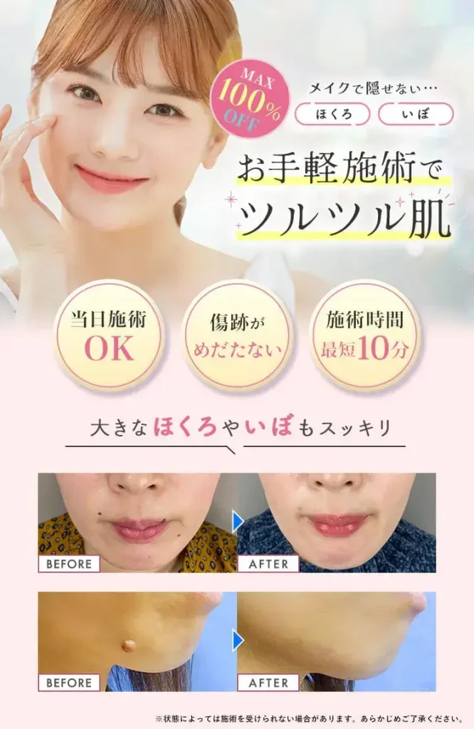 ほくろ除去は最短当日に施術ができ、レーザー治療や電気メスであれば10〜30分程度の施術時間で受けられますが、リスクを正しく理解しないと後悔する可能性が高いです。